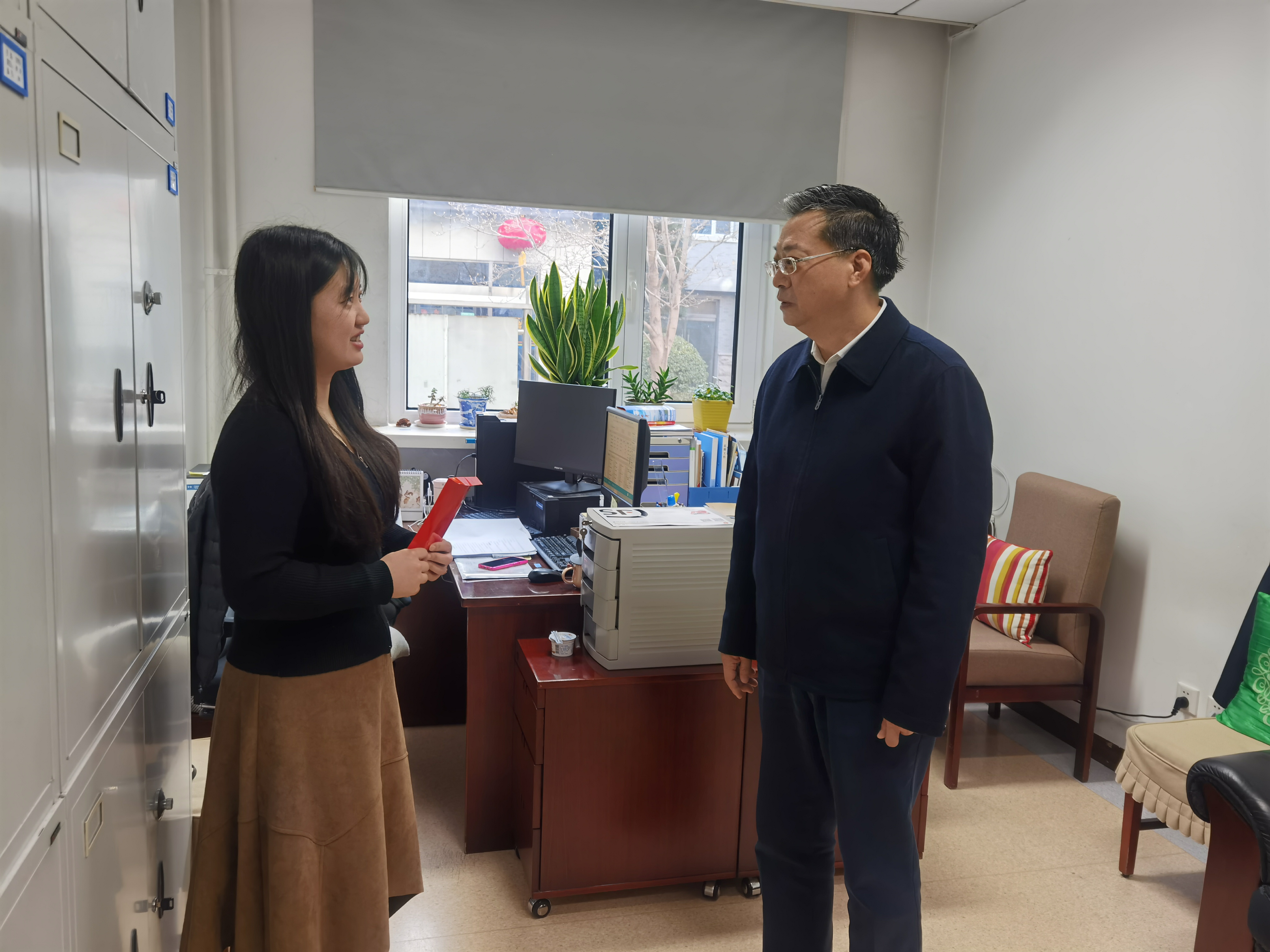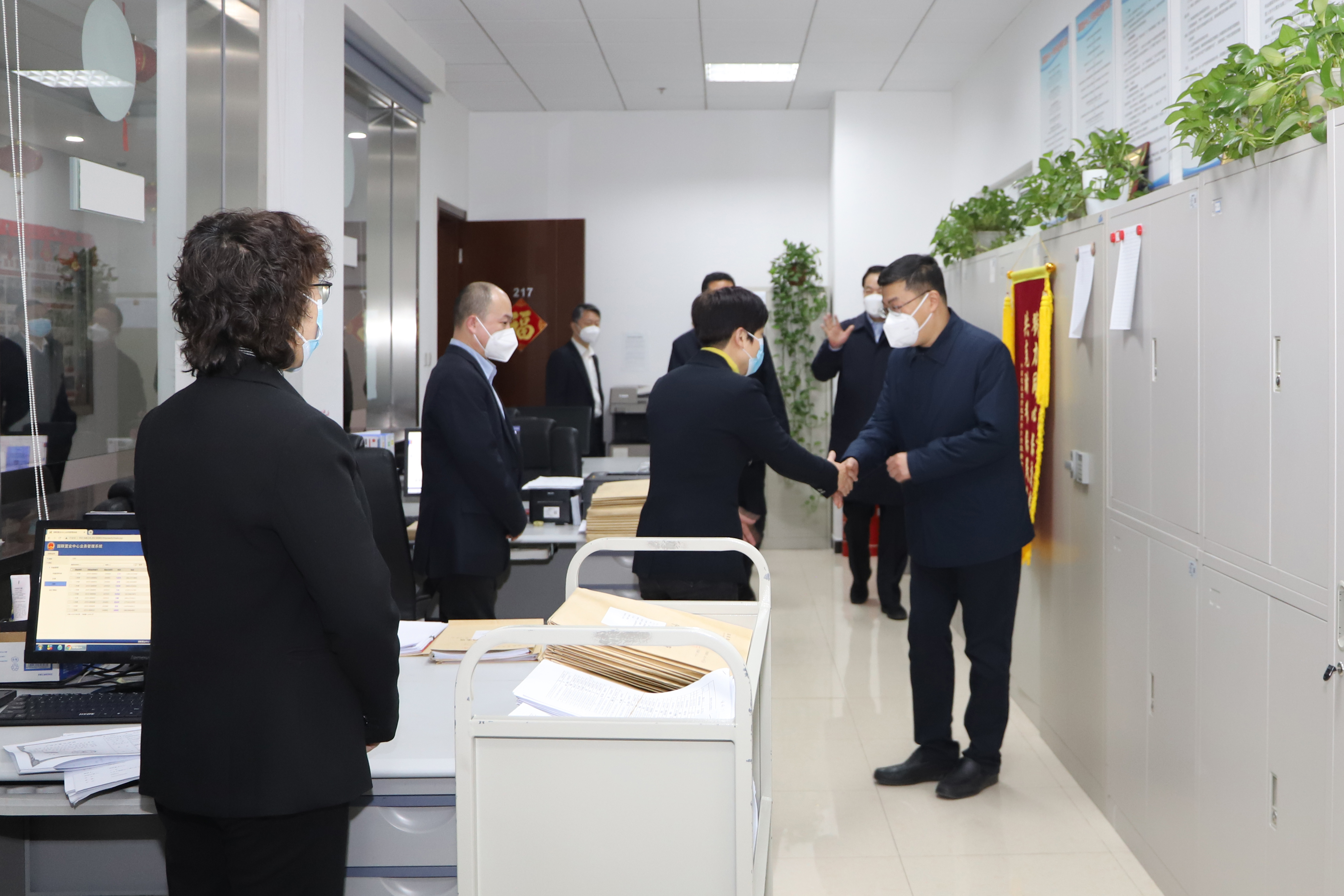 1月17日至19日,党组书记、局长王永红带队赴采购中心、住宅中心、国兴汽车服务中心、资金中心、同利物业管理中心、国联置业中心、友谊宾馆等局属单位亲切看望慰问一线干部职工,走访慰问离退休老同志。走访慰问期间,王永红仔细听取了有关单位的情况汇报,与大家亲切交谈,并代表局党组感谢他们为机关事务工作发展作出的积极贡献,向他们及家人致以新春祝福。